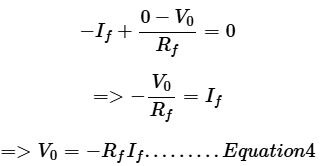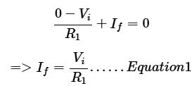 สมการ KVL ที่ด้านอินพุตของขั้วกลับเฟสของออปแอมป์จะเป็นดังนี้