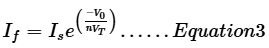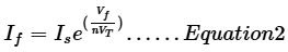 เรารู้ว่าสมการสำหรับกระแสที่ไหลผ่านไดโอด เมื่ออยู่ในสภาวะไบแอสตรง จะเป็นดังนี้ −