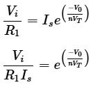 โปรดสังเกตว่าในสมการข้างต้น พารามิเตอร์ n, VT และ Is เป็นค่าคงที่ ดังนั้น แรงดันเอาต์พุต V0 จะเป็นสัดส่วนกับลอการิทึมธรรมชาติของแรงดันอินพุต Vi สำหรับค่าความต้านทาน R1 ที่คงที่