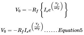 โปรดทราบว่า ในสมการข้างต้น พารามิเตอร์ n, VT และ Is เป็นค่าคงที่ ดังนั้น แรงดันเอาต์พุต V0 จะเป็นสัดส่วนกับค่าผกผันลอการิทึมธรรมชาติ (เลขชี้กำลัง) ของแรงดันอินพุต Vi สำหรับค่าความต้านทานป้อนกลับ Rf ที่คงที่