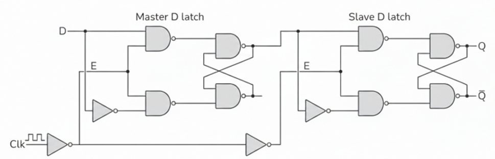AD Flip-Flop ประกอบด้วย D-pin สองตัวคุณสามารถดู D-pin ที่อัปเดตที่ขอบยกด้านล่าง:
