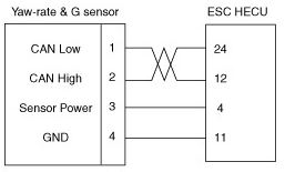 เซ็นเซอร์อัตราการหันเหและเซ็นเซอร์ G พร้อม ESC แสดงอยู่ด้านล่าง เมื่อใดก็ตามที่รถหมุนรอบแกนแนวตั้งเซ็นเซอร์นี้จะสังเกตเห็นอัตราการหันเหโดยอัตโนมัติผ่านการเปลี่ยนแปลงการสั่นสะเทือนของตะเกียบแผ่นในเซ็นเซอร์ หากความเร็วของการหันเหบรรลุความเร็วเฉพาะเมื่อสังเกตเห็นการหันเหของยานพาหนะการควบคุม ESC จะสามารถเปิดใช้งานได้อีกครั้ง