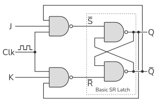 ตรงกันข้ามกับสิ่งที่คุณคิดอินพุตสองตัวของ JK Flip-Flop "J" และ "K" ไม่ใช่ตัวย่อสําหรับสิ่งที่หมุดทํา (ซึ่งเป็นกรณีของสลัก SR) พวกเขาได้รับเลือกจากนักประดิษฐ์ Jack Kilby (JK) เพื่อแยกความแตกต่างระหว่างการออกแบบรองเท้าแตะของเขาจากประเภทอื่นๆ