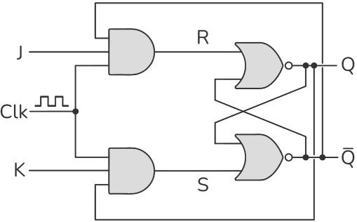 อีกวิธีหนึ่งในการใช้วงจรฟลิปฟล็อป JK พื้นฐานคือการใช้เกต AND สองเกตและเกต NOR สองเกตดังนี้ (ทํางานเหมือนกับที่สร้างด้วยเกต NAND):