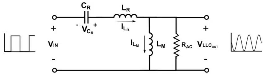 โปรดทราบว่าการคํานวณเหล่านี้ขึ้นอยู่กับการวิเคราะห์ฮาร์มอนิกครั้งแรก (FHA) วิธีนี้เหมาะสมเพราะเราถือว่า LLC ทํางานภายในความถี่เรโซแนนซ์ (fR) ด้วยการใช้การวิเคราะห์ฟูริเยร์ เราสามารถแสดงอินพุตของถังเรโซแนนซ์เป็นคลื่นสี่เหลี่ยมที่ประกอบด้วยคลื่นไซน์หลายคลื่นที่มีแอมพลิจูดและความถี่ต่างกัน เนื่องจากถังเรโซแนนซ์กรองคลื่นไซน์ทั้งหมดที่มีความถี่แตกต่างจาก fSW พื้นฐาน เราจึงสามารถเพิกเฉยต่อคลื่นทั้งหมดยกเว้นคลื่นไซน์พื้นฐาน ซึ่งทําให้การวิเคราะห์ของเราง่ายขึ้นอย่างมาก