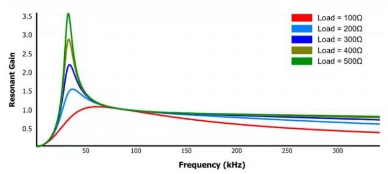 รูปที่ 5 แสดงอัตราขยายของถังเรโซแนนซ์สําหรับโหลดต่างๆ หากประกอบด้วยตัวเก็บประจุเรโซแนนซ์และตัวเหนี่ยวนําแม่เหล็กเพียงอย่างเดียว เมื่อโหลดเบา จุดสูงสุดที่ชัดเจนในการขยายของถังเรโซแนนซ์จะเห็นได้ชัด อย่างไรก็ตาม อัตราขยายสําหรับงานหนักไม่ได้ถึงจุดสูงสุด แต่จะแสดงการตอบสนองที่ลดลงและบรรลุความสามัคคีที่ความถี่สูงมากเท่านั้น
