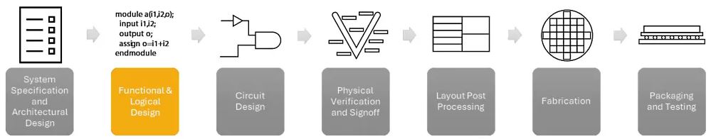 ขั้นตอนแรกในกระบวนการออกแบบวงจรรวม (IC) คือการกำหนดรายละเอียดระบบและการออกแบบสถาปัตยกรรม ข้อมูลนี้จะถูกแปลงเป็นรหัส HDL จากนั้นวิศวกรจะใช้รหัสนั้นเพื่อกำหนดการออกแบบเชิงฟังก์ชันและเชิงตรรกะ เมื่อการออกแบบเสร็จสมบูรณ์ การออกแบบจะถูกแปลงเป็นเน็ตลิสต์ ซึ่งจะถูกนำไปใช้ในการสร้างการออกแบบวงจร และดำเนินการกับกระบวนการออกแบบที่เหลือต่อไป