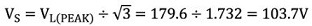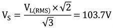 โดยที่: V S เท่ากับ (V L(PEAK) ÷ √ 3 ) และโดยที่ V L(PEAK) คือแรงดันไฟฟ้าระหว่างสายสูงสุด (V L *1.414)