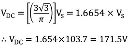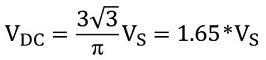 ดังนั้นค่าเฉลี่ยของค่ากระแสตรงของรูปคลื่นแรงดันเอาต์พุตจากวงจรเรียงกระแสเต็มคลื่น 3 เฟส จึงกำหนดได้ดังนี้: