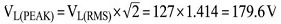 แรงดันไฟฟ้าสาย RMS (Root Mean Squared) คือ 127 โวลต์ ดังนั้นแรงดันไฟฟ้าสูงสุดระหว่างสาย (V L-L(PEAK) ) จะเป็น:
