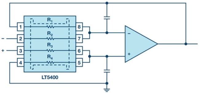 นอกจากนี้ ยังสามารถใช้เครื่องขยายสัญญาณดิฟเฟอเรนเชียลแบบรวม เช่น LTC6363 ที่มีตัวต้านทานจับคู่แบบรวมบนชิปได้