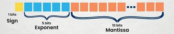 Float16 (FP16) : 1b สำหรับเครื่องหมาย, 5b สำหรับเลขชี้กำลัง, 10b สำหรับแมนทิสซา