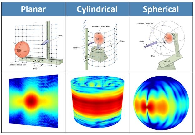 เนื่องจากเสาอากาศมักถูกออกแบบมาให้ทำงานในระยะทางไกล ดังนั้นนี่คือวิธีที่เราต้องการทดสอบอุปกรณ์ของเราในสิ่งที่เรียกว่า "สนามไกล" ที่แผ่รังสี อย่างไรก็ตาม วิธีนี้มักทำได้ยากเนื่องจากปัจจัยจำกัดอื่นๆ เช่น พื้นที่ว่างและสัญญาณรบกวนภายนอกหากทดสอบกลางแจ้ง อีกวิธีหนึ่งคือการวัดพลังงานที่แผ่รังสีจากเสาอากาศใกล้กับอุปกรณ์ใน "สนามใกล้" ที่แผ่รังสี แล้วใช้ขั้นตอนวิธีทางคณิตศาสตร์ในการแปลงข้อมูลที่วัดได้เป็นสนามไกลที่แผ่รังสี พื้นที่ที่จำเป็นสำหรับการวัดสนามใกล้มีน้อยกว่ามาก ทำให้สามารถทดสอบเสาอากาศขนาดใหญ่ทางไฟฟ้าได้ในห้องทดสอบภายในอาคาร