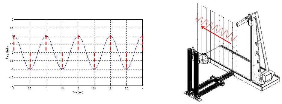 อีกประเด็นหนึ่งที่ต้องพิจารณาคือ ช่วงเวลาการสุ่มตัวอย่างข้อมูลบนพื้นผิวการวัดสนามใกล้ ทฤษฎีการสุ่มตัวอย่างของ Nyquist กำหนดว่าสัญญาณจะต้องถูกสุ่มตัวอย่างที่ความถี่เป็นสองเท่าของความถี่สัญญาณเพื่อสร้างสัญญาณที่ปราศจากภาพ ซึ่งเทียบเท่ากับช่วงเวลาการสุ่มตัวอย่าง 1/2 หรือน้อยกว่า เพื่อรับประกันว่าบริเวณสนามไกลที่ปราศจากภาพจะมีมุม +/-90 องศา อย่างไรก็ตาม ช่วงเวลาการสุ่มตัวอย่างอาจเพิ่มขึ้นได้เพื่อเร่งเวลาการวัดหากเก็บข้อมูลสำหรับมุมสนามไกลที่ลดลง ซึ่งมักเป็นกรณีเมื่อทำการวัดคุณลักษณะของเสาอากาศดาวเทียม