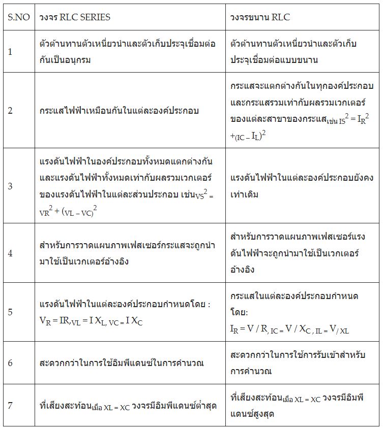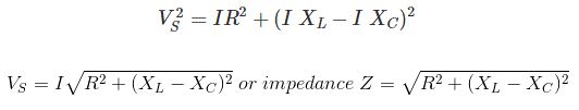 อิมพีแดนซ์ Z ของวงจร RLC แบบอนุกรมถูกกําหนดให้เป็นการต่อต้านการไหลของกระแสเนื่องจากความต้านทานวงจร R, รีแอกแตนซ์อุปนัย, XL และรีแอกแตนซ์แบบคาปาซิทีฟ,XC หากรีแอกแตนซ์อุปนัยมากกว่ารีแอกแตนซ์แบบคาปาซิทีฟเช่น XL %3EXC วงจร RLC จะมีมุมเฟสล้าหลัง และถ้ารีแอกแตนซ์แบบ capacitive มากกว่ารีแอกแตนซ์อุปนัย เช่นXC %3EXL วงจร RLC จะมีมุมเฟสนํา และถ้าทั้งอุปนัยและ capacitive เหมือนกันเช่น XL = XC วงจรจะทํางานเป็นวงจรตัวต้านทานล้วนๆ