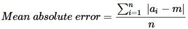 โดยที่ “ai” คือค่าที่วัดได้ และ “m” คือค่าเฉลี่ย เครื่องหมาย ∑ แทนผลรวมของค่าความคลาดเคลื่อนสัมบูรณ์ทั้งหมด และ “n” แทนจำนวนค่าที่สังเกตได้ หรือจำนวนค่าความคลาดเคลื่อนสัมบูรณ์