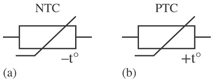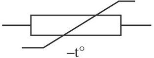 ค่าความต้านทานของเทอร์มิสเตอร์ NTC จะลดลงตามอุณหภูมิที่เพิ่มขึ้น ดังนั้นกระแสที่ไหลผ่านเทอร์มิสเตอร์ NTC จะเพิ่มขึ้นตามอุณหภูมิที่เพิ่มขึ้น สัญลักษณ์มาตรฐาน IEC สําหรับเทอร์มิสเตอร์ NTC แสดงในรูปที่ 1