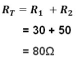 คํานวณความต้านทานทั้งหมดในวงจรและรวมทั้งหมดเนื่องจากตัวต้านทานเชื่อมต่อเป็นอนุกรม