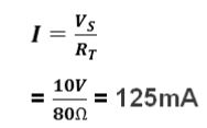 คํานวณแรงดันไฟฟ้าตกที่เกิดขึ้นในตัวต้านทานแต่ละตัวและปริมาณกระแสที่จะไหลผ่านตัวต้านทาน 30Ω ที่เชื่อมต่อแบบอนุกรมกับตัวต้านทาน 50Ω เมื่อแรงดันไฟฟ้าของแหล่งจ่ายไฟในชุดอนุกรมคือ 10 โวลต์ DC