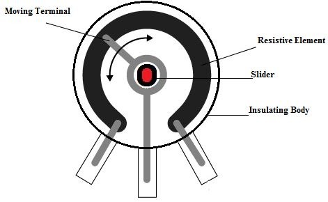 ตัวหลักของตัวต้านทานประกอบด้วยแถบวัสดุนำไฟฟ้าที่เคลื่อนที่เมื่อหมุน การเคลื่อนไหวนี้จะเปลี่ยนแปลงความต้านทานของตัวต้านทานโดยการเพิ่มหรือลดปริมาณการสัมผัสระหว่างตัวนำและพื้นผิวที่ตัวต้านทานวางอยู่ ความต้านทานที่เปลี่ยนแปลงนี้สามารถนำไปใช้ควบคุมสัญญาณไฟฟ้าหรือส่วนประกอบภายในวงจรได้