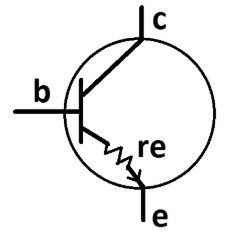 ในวงจรตัวส่งสัญญาณ (emitter) มีตัวต้านทาน "ซ่อนอยู่" ชื่อ Re คุณไม่สามารถวัดค่าด้วยมัลติมิเตอร์ได้ แต่มันมีอยู่จริง ค่าของ Re จะเปลี่ยนแปลงไปตามกระแสที่ไหลผ่านตัวเก็บประจุ (collector current) Ic โดยที่ Re = 25/Ic เมื่อ Ic มีหน่วยเป็นมิลลิแอมป์ ดังนั้นถ้า Ic เท่ากับ 10 มิลลิแอมป์ ค่า Re จะเท่ากับ 2.5 โอห์ม สิ่งสำคัญอีกอย่างที่ควรรู้คือ อัตราขยายกระแสของทรานซิสเตอร์สามารถประมาณได้จาก Ic/Ib และเรียกว่า hfe โดยทั่วไปจะมีค่า 50 ถึง 1000 สำหรับทรานซิสเตอร์ขนาดเล็ก การเลือกใช้ทรานซิสเตอร์ในวงจรนี้ไม่ใช่ปัญหา ทรานซิสเตอร์ชนิด NPN ขนาดเล็กเกือบทุกชนิดก็ใช้ได้