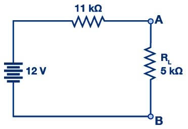 เนื่องจากไม่มีกระแสไหลผ่านตัวต้านทาน 8 kΩ จึงไม่เกิดแรงดันตกคร่อมตัวต้านทาน ดังนั้นแรงดันคร่อมขั้ว AB จึงเท่ากับแรงดันคร่อมตัวต้านทาน 4 kΩ ดังนั้น แรงดัน 12 V จะปรากฏที่ขั้ว AB ดังนั้น แรงดันเทเวนิน VTH = 12 V