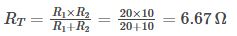 ตัวต้านทาน 10 Ω ขนานกับ 20 Ω ดังนั้นความต้านทานเทียบเท่าของวงจรคือ: