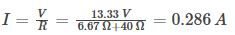 กระแสไฟฟ้าที่ไหลในวงจรคำนวณได้จากสูตรด้านล่างนี้: