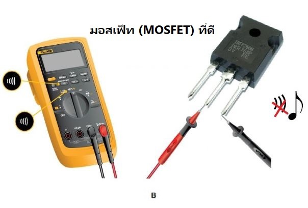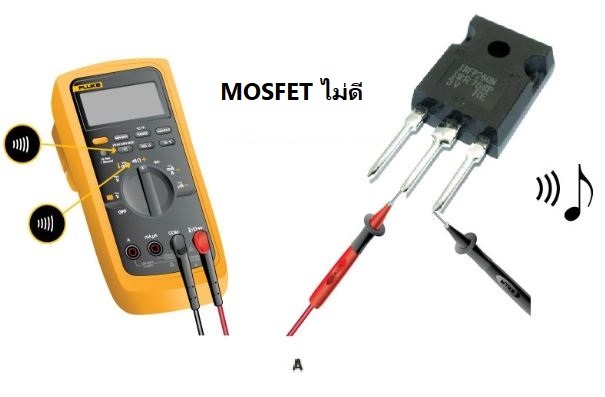 • หากออดมัลติมิเตอร์ปิดอยู่ แสดงว่า MOSFET อยู่ในสภาพดี