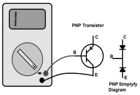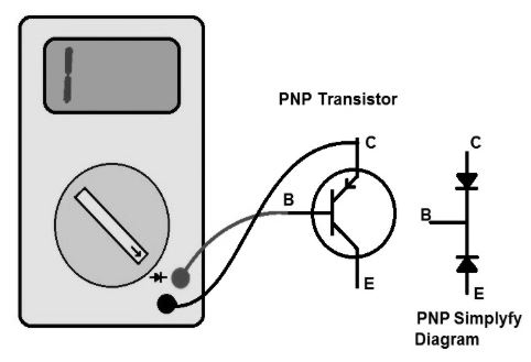 (A) ขั้นแรกให้เปิดดิจิตอลมัลติมิเตอร์และเลือกโหมดไดโอด เชื่อมต่อสายวัดทดสอบเข้ากับขั้วทรานซิสเตอร์ เชื่อมต่อสายวัดทดสอบไว้สองสามวินาทีที่การเชื่อมต่อแบบนี้ (A) อ่านการวัดที่แสดง หากค่าทรานซิสเตอร์อยู่ในช่วงการวัดมัลติมิเตอร์จะแสดงค่าทรานซิสเตอร์ ค่ามัลติมิเตอร์ที่แสดงอยู่ระหว่าง 0 สูงกว่า 150 ทรานซิสเตอร์ ดี ค่ามัลติมิเตอร์ที่แสดงคือ 0 หรือ .0L ทรานซิสเตอร์ ไม่ดี (B) เชื่อมต่อสายวัดทดสอบเข้ากับขั้วทรานซิสเตอร์ เชื่อมต่อสายวัดทดสอบไว้สองสามวินาทีที่การเชื่อมต่อแบบนี้ (B) อ่านการวัดที่แสดง หากค่าทรานซิสเตอร์อยู่ในช่วงการวัดมัลติมิเตอร์จะแสดงค่าทรานซิสเตอร์ ค่ามัลติมิเตอร์ที่แสดงอยู่ระหว่าง 0 สูงกว่า 150 ทรานซิสเตอร์ ดี ค่ามัลติมิเตอร์ที่แสดงคือ 0 หรือ .0L ทรานซิสเตอร์ ไม่ดี (C) เชื่อมต่อสายวัดทดสอบเข้ากับขั้วทรานซิสเตอร์ เชื่อมต่อสายวัดทดสอบไว้สองสามวินาทีที่การเชื่อมต่อแบบนี้ (C) อ่านการวัดที่แสดง หากค่าทรานซิสเตอร์อยู่ในช่วงการวัดมัลติมิเตอร์จะแสดงค่าทรานซิสเตอร์ ค่ามัลติมิเตอร์ที่แสดงคือ 1 ทรานซิสเตอร์ ดี (D) เชื่อมต่อสายวัดทดสอบเข้ากับขั้วทรานซิสเตอร์ เชื่อมต่อสายวัดทดสอบไว้สองสามวินาทีที่การเชื่อมต่อแบบนี้ (D) อ่านการวัดที่แสดง หากค่าทรานซิสเตอร์อยู่ในช่วงการวัดมัลติมิเตอร์จะแสดงค่าทรานซิสเตอร์ ค่ามัลติมิเตอร์ที่แสดงคือ 1 ทรานซิสเตอร์ ดี วิธีที่ 2: ใช้มัลติมิเตอร์กับ PNP ทรานซิสเตอร์
