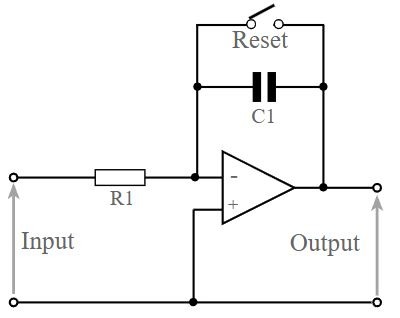 การเพิ่มฟังก์ชันหรือความสามารถในการรีเซ็ตนั้นทำได้ง่ายมาก เพียงแค่ต่อสวิตช์คร่อมตัวเก็บประจุของวงจรอินทิเกรเตอร์ ซึ่งจะทำให้ตัวเก็บประจุคายประจุและรีเซ็ตวงจรอินทิเกรเตอร์โดยรวม