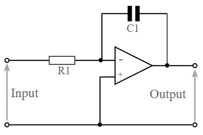 ในแง่ของการทำงาน วงจรนี้จะสร้างเอาต์พุตที่แปรผันตรงกับค่าอินทิกรัลของแรงดันไฟฟ้าขาเข้าเทียบกับเวลา