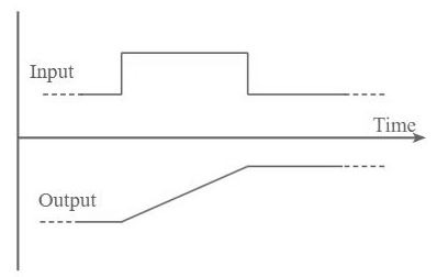 จากแผนภาพ จะเห็นได้ว่าในขณะที่อินพุตยังคงเป็นศูนย์ เอาต์พุตก็จะเป็นศูนย์เช่นกัน อย่างไรก็ตาม เมื่อป้อนแรงดันไฟฟ้าแบบขั้นบันไดเข้าไปที่อินพุต เอาต์พุตจะเพิ่มขึ้น เมื่อแรงดันไฟฟ้าแบบขั้นบันไดกลับไปที่ศูนย์ เอาต์พุตจะคงอยู่ที่แรงดันไฟฟ้าครั้งล่าสุดที่ได้รับ