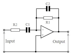 ด้วยส่วนประกอบอิเล็กทรอนิกส์เพิ่มเติม C2 และ R2 วงจรจะเริ่มกลายเป็นตัวรวมที่ความถี่สูง (f » 1/2 π R1 C1 ) สิ่งนี้เกิดขึ้นจากความเรียบของข้อเสนอแนะและการชดเชยโดยรวมภายในแอมพลิฟายเออร์ปฏิบัติการเอง