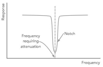ตามชื่อตัวกรองรอยบาก มันมีรอยบากหรือแถบแคบซึ่งตัวกรองจะลบสัญญาณบนความถี่นั้น